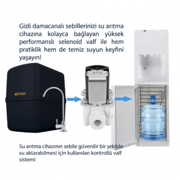 Su arıtma cihazlarında shut-off valf yerine tercih edilir. Quick 3/8″ Solenoid Valf arıtma cihazlarında su tankı dolduğunda membran filtreye giren suyun akışını kapatır ve bu sayede atık suyun kesilmesi sağlanır. 3/8″ Solenoid Valf normalde kapalı olup valfe elektrik verildiğinde valf açık konuma gelir.